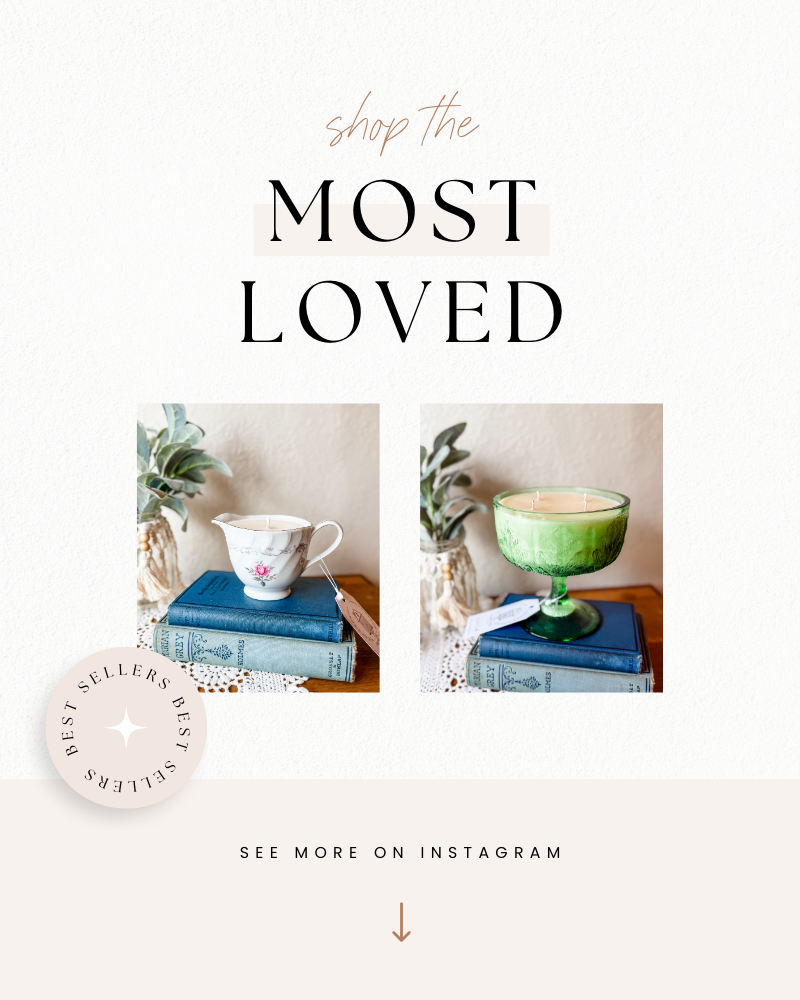 Here at The Village Wick, we find the most beautiful vintage glassware and hand-pour each with natural, clean burning soy wax mixed with phthalate-free fragrances. Each piece is ideal not only for the candle lover, but fans of vintage decor.
