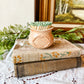 Add a spark of charm to your home with this one-of-a-kind peach matchstick holder with scrollwork. Lovingly sourced and hand-filled in our Miamisburg studio, this matchstick holder sits perfectly on a bedside table, mantel, or next to your favorite candle. Whether you’re lighting a cozy evening flame or gifting to someone who adores vintage treasures, this sweet set brings elegance and warmth to any space.